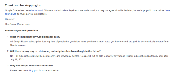 こちらはGoogleリーダーというサービスですが、2013年末頃にサービスの提供を終えました。