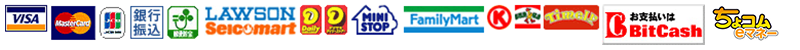 クレジット決済、コンビニ決済、銀行振込・郵便振替、BitCash、ちょコムeマネーをお選びいただけます。