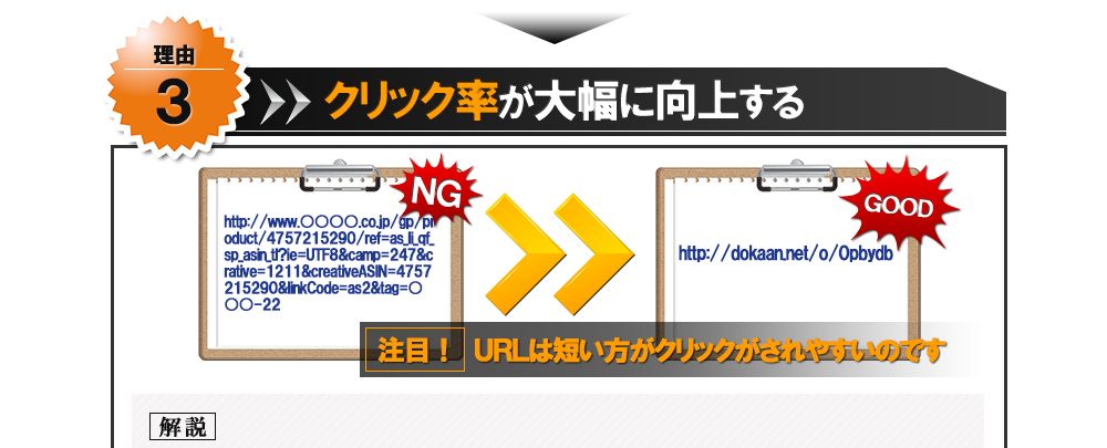 このスッキリとした短いURL。どちらの方がクリックしようという気持ちになりますか?