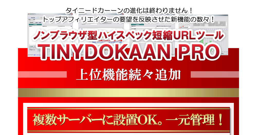 アフィリエイターならば一人に一台の最高の短縮URLツールがTINYDOKAAN PROです。